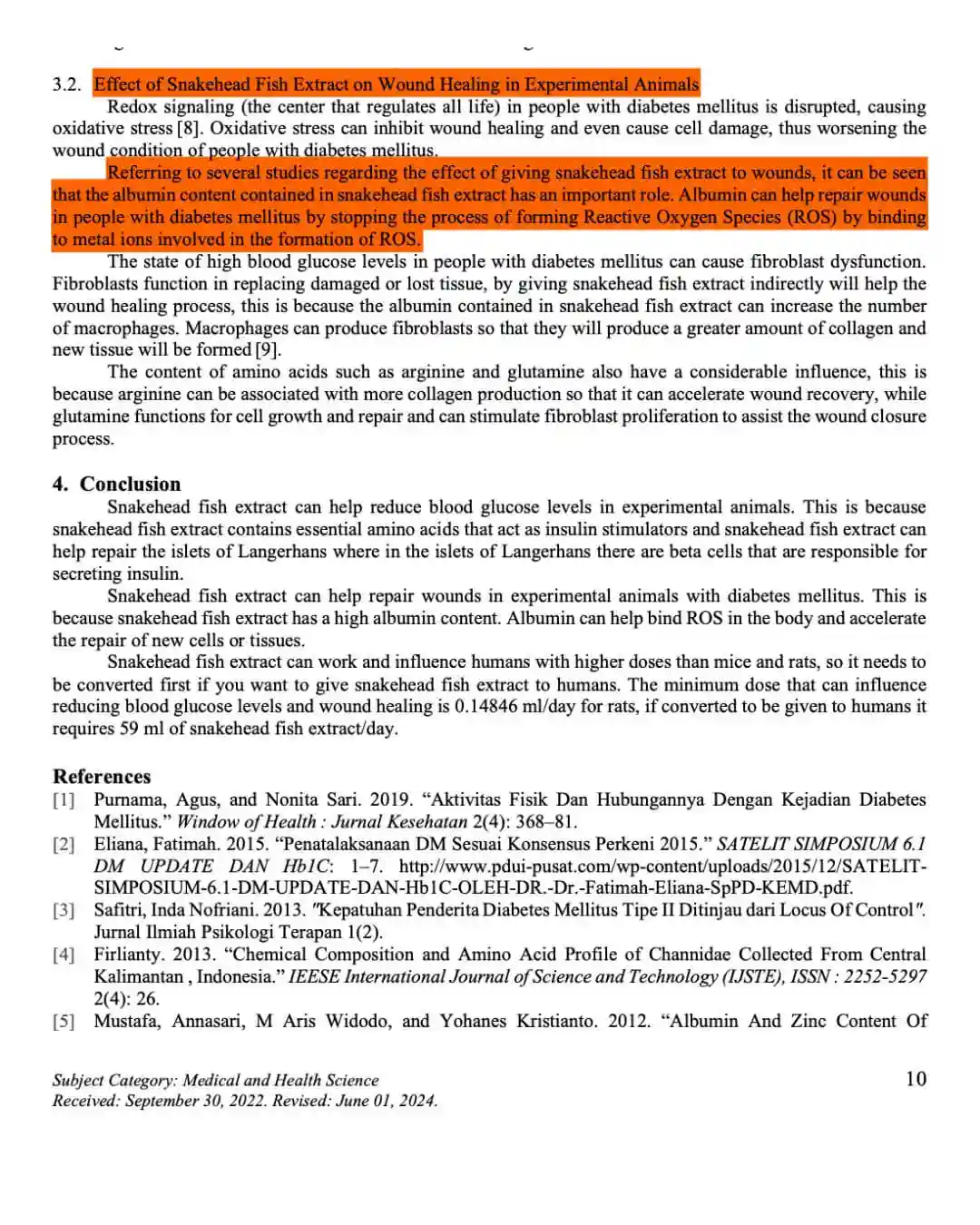 Kajian Jurnal Antarabangsa (International Journal of Pharmaceutical Research, 2020) sahkan haruan bantu aktifkan sel imun, kolagen & percepat healing luka