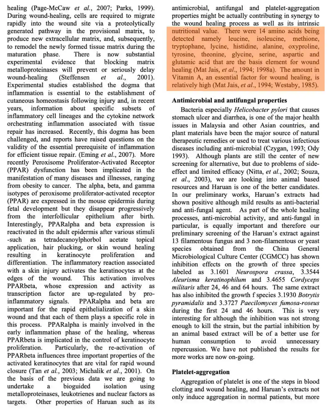 Albumin dalam ikan haruan mempercepat pemulihan luka, rangsang pembentukan sel fibroblast baru dan lindungi luka daripada kerosakan akibat radikal bebas. Sangat penting untuk pesakit
