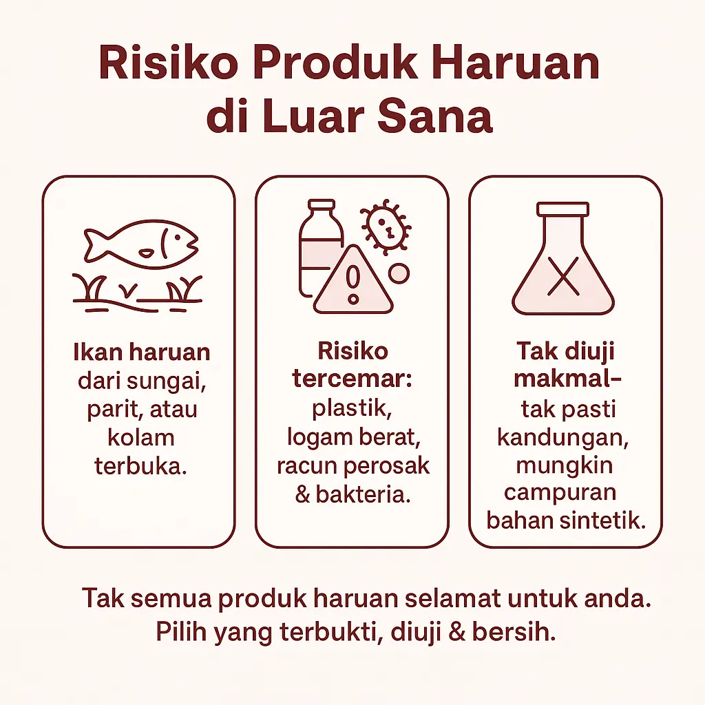 Setakat ini tiada laporan kesan sampingan serius. Jika ada alahan ikan, elakkan. Jika ada masalah kesihatan kritikal, rujuk doktor sebelum mula.
